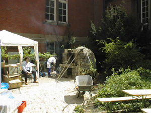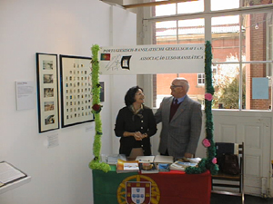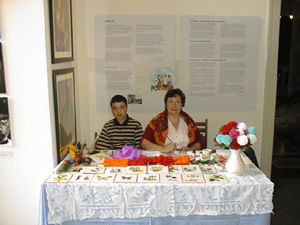 Filipa Baade und Helge Dankwart am PHG-Stand Handgefertigte Papierblumen Aufbau der Stände Verkauf von Kunsthandwerk Es geht los ...