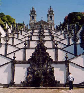 Die Wallfahrtskirche Bom Jesus do Monte liegt nahe Braga in 400m Höhe auf dem Monte Espinho. Die 1784 bis 1811 gebaute Kirche ist die wohl meist fotografierte Kirche Portugals und ein echter Publikumsmagnet. Das Umfeld wurde dem Andrang gerecht und bietet neben der Kirche hübsch angelegte Gärten, eine Grotte, Kapellen und weiter oben einen malerischen See mit waldigem Rastplatz. Herausragend ist die 1725 von Carlos da Cruz Amarante entworfene fast tausendstufige Treppenanlage.