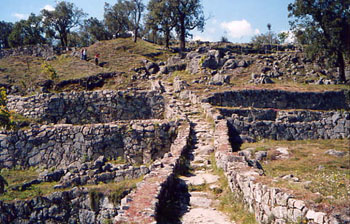 Die Stadt umgeben von einer engen Mauer. Weitere Mauern schlossen den Berg nach unten in immer weiter gefassten