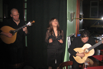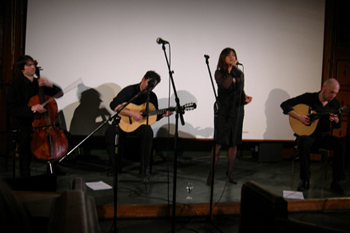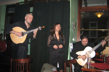 die Zuhörer, saßen auf Treppenabsätzen und Fenstersimsen und lauschten den wunderschönen Klängen auf der Bühne. Später ging es dann im kleinen Kreis noch weiter ins Restaurant "A Varina" in der Karpfangerstraße, wo Wirt Celso seinen Ehrengästen ein wahres Festmahl bereitete. Zum Dank gab es auch dort noch ein bisschen Fado - man fühlte sich fast wie in der Alfama!
