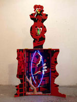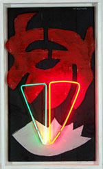 Zu Beginn der 90-er Jahre setzt ein Wandel innerhalb seiner Technik und der verwandten Materialien ein. Mittels herabtropfender Farben und beigemengter Materialpartikel verwischte er die Konturen und tauchte seine Figuren scheinbar in eine 'kultische Bedeutung' ein. Für das Album 'Fétiches' fertigte er 1995 vier Lithografien (Bernardo Pinto de Almeodo, Text). Eine Mexiko-Reise 1993 und die Beschäftigung mit der mexikanischen Kunst und Kultur inspirierten ihn zu einer umfangreichen Serie, die sich teils an der Volkskunst orientierte und einen unpathetischen Umgang mit dem Tod pflegte. 1998 schließt sich nach langjähriger Beschäftigung des Künstlers mit der asiatischen Kultur die China-Serie an. Der Bildtitel 'Traum in der Pagode des Himmlischen Palastes', einem chinesischen Gedicht entnommen, weist auf seine besondere Beschäftigung mit der Literatur hin.