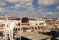 Wenig erfreulich waren die langen Wartezeiten vor den besonders beliebten Ausstellungen. So brauchten wir für das Ozeanarium gut 2 Stunden, für den deutschen und den portugiesischen Pavillon jeweils 1 Stunde. An anderen Tagen sollen die Wartezeiten noch sehr viel länger gewesen sein. Dafür entschädigten die künstlerischen Darbietungen, wie Konzerte, Theater, Umzüge, die im Laufe des Tages mehr und mehr zunahmen. Höhepunkt war die light show gegen Mitternacht auf der doca, die in ihrer perfekten Harmonie von Klang, Bewegung und Feuerwerk die Massen allabendlich in ihren Bann zieht.