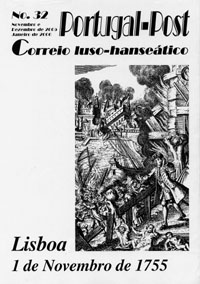 Ausschnitt eines deutschen Kupferstichs aus dem 18. Jahrhundert, der die Zerstörungen durch das Erdbeben von 1755 in Lissabon zeigt
