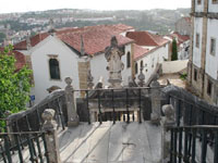 Als nächstes gehe ich in ein Touristenbüro, um mir eine Stadtkarte zu besorgen und um zu fragen, wo es Internetzugang gibt. Ein wahres Unterfangen, nach Netz-Möglichkeiten zu suchen! Habe dabei aber viel von der Stadt gesehen. Man sieht sehr viele Studenten. Obwohl sie wohl kaum anders sind als in anderen Städten, fühle ich eine gewisse Erfurcht vor ihnen. Die ganze Stadt erfüllt mich mit Erfurcht. Es riecht nach alter Kultur. Ich liebe die vielen verwinkelten Gassen, die vielen kleinen Durchgänge, die stark verfallenen, aber noch immer bewohnten Häuser, die von früheren "großen Zeiten" zeugen und überhaupt die wunderschöne Lage Coimbras. Beim Abschluss des Semesters fahren die älteren Studenten in Wagen verschiedener Farben. Die Farbe kennzeichnet ihre Ausbildung (ob Medizin, Jura, ...) Die neu eingeschriebenen Studenten, die sogenannten caloiros, müssen zu Fuß laufen, mit einer an ihren Beinen befestigten Kette aus Dosen (die neuen Sklaven).