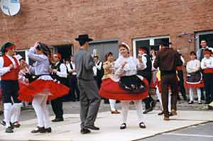 Volkstanz vor den Räumen der APH (Deutschlands ältester portug. Gastarbeiterverein) in der Heinrichstraße in Eimsbüttel
