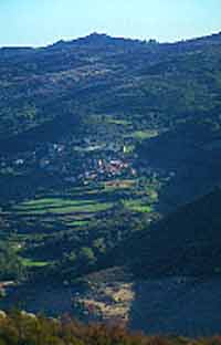 Nach eintägiger Ruhepause nahm uns João bis nach Montalegre mit. Von dort aus erreichten wir per Anhalter die Hochebene von Pitões das Júnias, einem gottver-lassenen Nest in der Provinz Trás-os-Montes (Land hinter den Bergen), am Ostrand des Nationalparks Peneda-Gerês. Den letzten Kilometer marschierten wir durch ein Heidemoor. Den Horizont begrenzte die Silhouette eines zackigen Granitkammes, über dem sich drohend rabenschwarzes Gewittergewölk zusammen-geballt hatte. Vorbei an einigen Gastarbeiterhäusern (casa do emigrante) mit ihrer auffälligen Farbgebung und den Statussymbolen – Fernsehantenne, marmorner Treppen-aufgang, Auto – stehen wir unvermittelt in einem der transmontanen Dörfer, in dessen düsterem Gassen-labyrinth wir – zumal in der Finsternis des immer lauter drohenden Unwetters – sofort jede Orientierung verlieren.