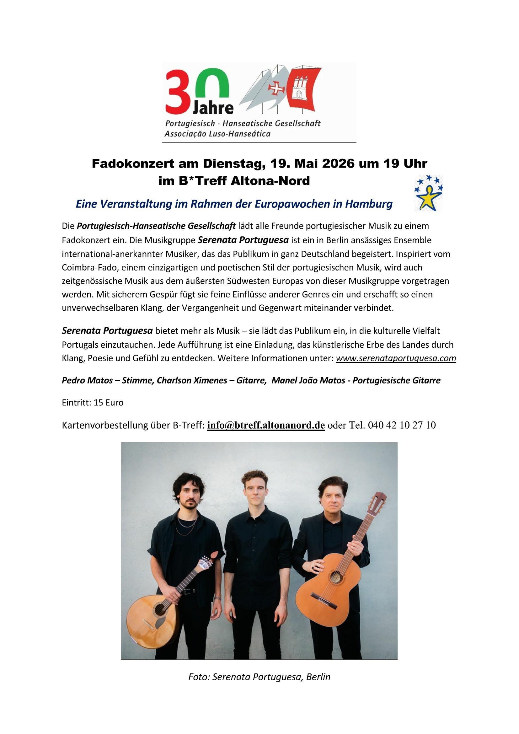 Ankündigung: Fadokonzert am Di. 19. Mai 2026 im B-Treff Altona Nord