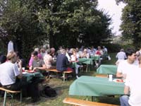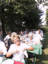 Schon am Tag vorher waren fleißige Frauenhände beim Gemüseschnippeln und Salatemachen tätig, sowie unser „Chefgriller“ Klaus Horstmann beim Zubereiten der Sardinen und des Fleisches. Am Sonntag dann Vorbereiten des Platzes: es waren wieder freiwillige Helfer dabei, Tische und Bänke aufzustellen, den Grill vorzubereiten, das Brot zu schneiden, Besteck, Teller und Trinkbecher zurechtzustellen. Es war ein emsiges Schaffen, welches mit Lust und Freude ausgeführt wurde. Man wartete nun auf die Gäste. Anfangs einzeln, dann in größeren Gruppen trafen sie ein, um gemeinsam ein sehr vergnügtes Fest zu erleben. Doch gehen wir mal in die Statistik. Wir sind etwas mehr als 230 Mitglieder, aber nur 60 fanden den Weg zum Feiern. Sie brachten allerdings 43 Gäste mit. Wir waren also insgesamt 103 Teilnehmer, ein neuer Rekord in der Geschichte unserer Sardinhada. Doch von gut 230 Mitgliedern kamen nur 60 zur Sardinhada, das sind rund 26%. Warum nur so wenig? Wenn man die 43 Gäste dagegen hält, so ist das doch ein Zeichen dafür, dass die Sardinhada Zuspruch findet. Verzehrt wurde bei der Sardinhada: 32 kg Sardinen, 16 kg Fleisch, 40 Würstchen, 65 l Wein (rot und weiß), 18 l Mineralwasser, 18 Kannen Kaffee und eine große Zahl gespendeter Kuchen. Untermalt wurde das Ganze von Fado-Klängen aus Ulrich Deckers Stereo-Anlage. Am späten Nachmittag löste sich die Versammlung so langsam auf. Fazit: Es war ein schöner und gemütlicher Tag. Die Teilnehmer werden noch lange davon reden. Für das nächste Jahr hoffen wir, dass noch mehr Mitglieder den Weg zur Sardinhada finden werden. Theodor Gröpper |