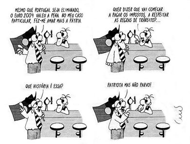 Nem todos gostaram deste surto de patriotismo. O jornalista e escritor Miguel Sousa Tavares fala numa "histeria patriótica de que nem nos tempos áureos do salazarismo há notícia" (Público, 18-6-04). Recusa-se a chamar, como foi sugerido, ao Figo, ao Scolari e afins "heróis do patriotismo moderno". Os verdadeiros heróis para ele são portugueses como "o Saramago, o Siza, o Damásio, a Maria João Pires, ... o Mário Soares." E com ele, outros intelectuais, como Clara Ferreira Alves, directora da Casa de Pessoa e Inês Pedrosa, a jovem escritora, se sentem incomodados com a "americanização" patente nesse patriotismo balofo. Expressão dessa atitude crítica é o cartoon de Luís Afonso, também publicado no "Público" (16-6-04). Lá um "patriota" declarado, de bandeira em riste, recusa-se de levar o seu patriotismo até ao ponto de pagar os impostos e de respeitar as regras de trânsito: é patriota mas não parvo!
