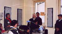Mit 15 Personen ging's dann am Samstag, den 26. Februar 2005, los. Wir trafen uns mit Peter Koj an der Sternschanze. Dieser Bahnhof hat zwei Ausgänge.... Aber Peter Koj hat uns gefunden! Zunächst gingen wir einmal eine bica trinken, wenn auch nicht in der ältesten Pastelaria, weil sie zu voll war, aber der gleich nebenan gelegene ‚Spanier' konnte die Getränke auch zubereiten. Dann machten wir uns auf den Weg zum Radiosender. Wir wurden sehr freundlich vom Redakteur Herrn Luís Carvalho und dem Tontechniker, Jerónimo Barrinho, aufgenommen und durften sogar "on air" Grüße an die Hörerschaft richten. Wir wurden ausgefragt und uns wurde ausführlich alles erklärt. Wir waren beeindruckt über die Möglichkeiten eines eigenen portugiesischsprachigen Radioprogramms! Und über den persönlichen Einsatz der Redakteure. Noch mit der portugiesischen Musik im Ohr ging es dann beschwingt Richtung Museum. Leider war das Wetter nicht so, wie es hätte sein sollen: feuchter Schneegriesel und kalt.