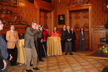 Der Botschafter nahm die Gelegenheit wahr, um in einem tadellosen Deutsch die Geschichte der traditionellen, engen Bindungen zwischen Portugal und der Hansestadt nachzuzeichnen, angefangen von der Ankunft der ersten Sefarden am Ende des 16. Jahrhunderts bis zur starken portugiesischen Präsenz unserer Tage (die neusten Zahlen belaufen sich auf 15.000, Deutschlands größte portugiesische Kolonie). Er hob hervor, dass es in Hamburg seit der Gründung der Universität im Jahre 1919 einen portugiesischen Lehrstuhl gibt und mit dem Gymnasium Hochrad eine Schule, die seit 20 Jahren Portugiesisch als dritte Fremdsprache anbietet. Und da er selbst bei der Einweihung des Amália-Rodrigues-Wegs am 24. Oktober 2003 dabei war, erinnerte an diese ungewöhnliche Ehrung der Fadosängerin in einer Stadt, die so weit von ihrer Heimat entfernt ist, ohne allerdings zu erwähnen, dass dies das Werk unserer Gesellschaft war.
