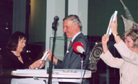 Dieter Berghöfer überreicht den Preis an Lidia und Karin