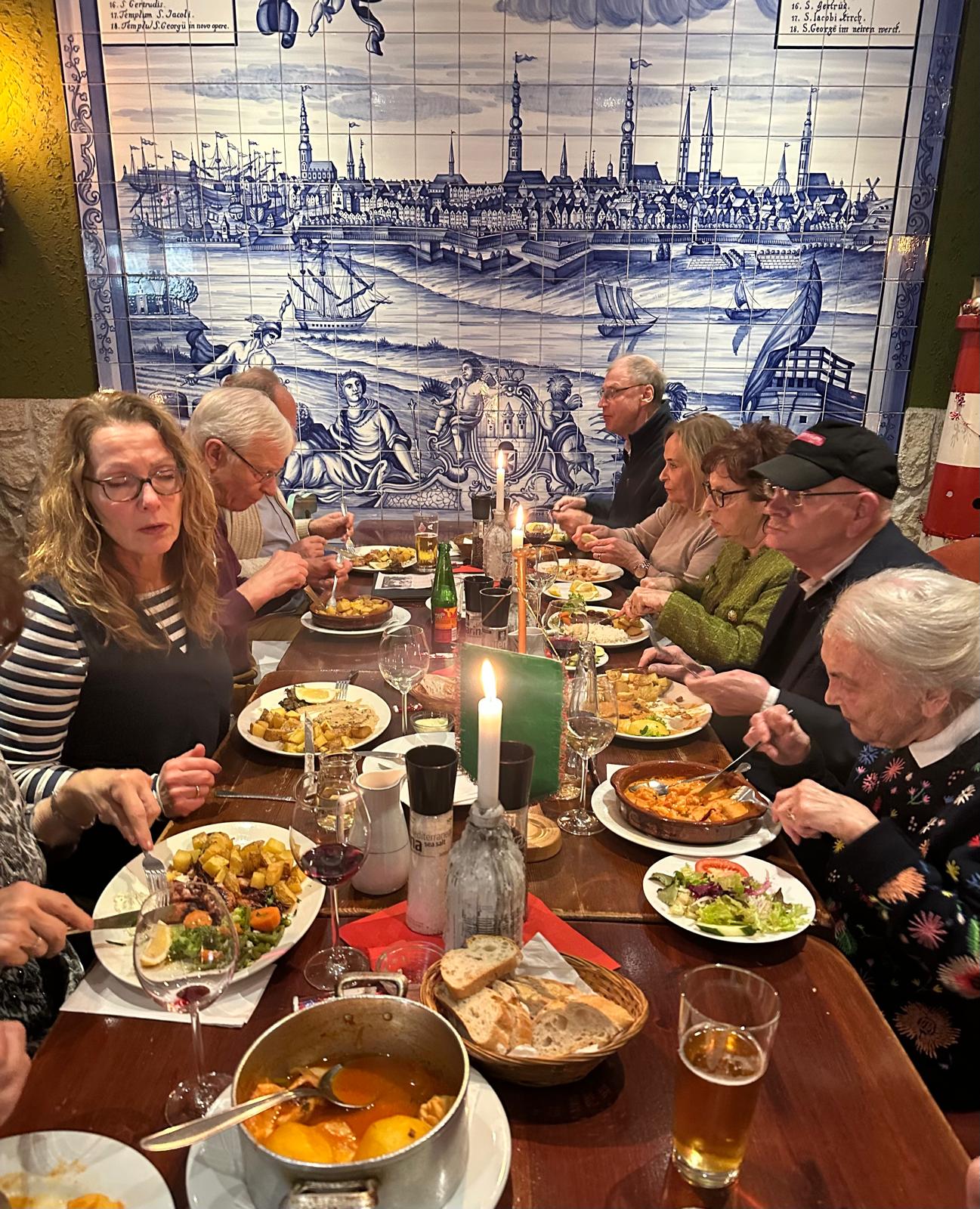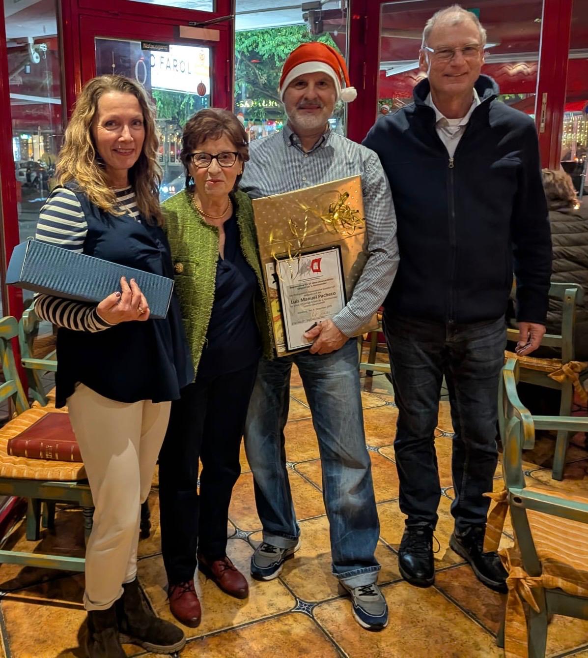Wie in jedem Jahr fand auch 2025 wieder eine PHG-Weihnachtsronda am 4.12. im Restaurant O Farol im Portugiesenviertel statt. Diese Ronda stand unter dem Motto der Ehrung langjährig aktiver Mitglieder und so wurden mit Urkunden Helge Dankwarth, Filipa Baade und unser Erster Vorsitzender Luis Pacheco geehrt. Bei guter Laune und bestem Essen waren über 25 PHG-Mitglieder und Freunde Portugals gekommen, um diese Ronda gemeinsam zu begehen. Unsere langjährigen Aktivisten Helge und Filipa freuten sich natürlich bei diesem Anlass geehrt zu werden. Filipa blickt auf viele Jahre Sprachunterricht in der PHG zurück. Sie ist von Anfang an dabei gewesen. Helge hat Jahrzehnte lang die Ronda organisiert und war ebenfalls eines der Gründungsmitglieder unseres Vereins. Luis Pacheco ist nun schon fast ein Jahrzehnt unser erster Vorsitzender und bemüht sich unermüdlich um das Wohlergehen des Vereins. Er ist selbst Portugiese und ist mit vielen Portugiesen in Hamburg befreundet. Die Vereinsmitglieder bedanken sich bei allen drei Jubilaren für ihr Engagement.